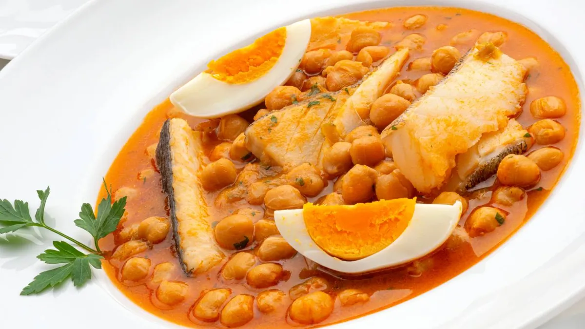 5. Sirve los garbanzos marinera con bacalao