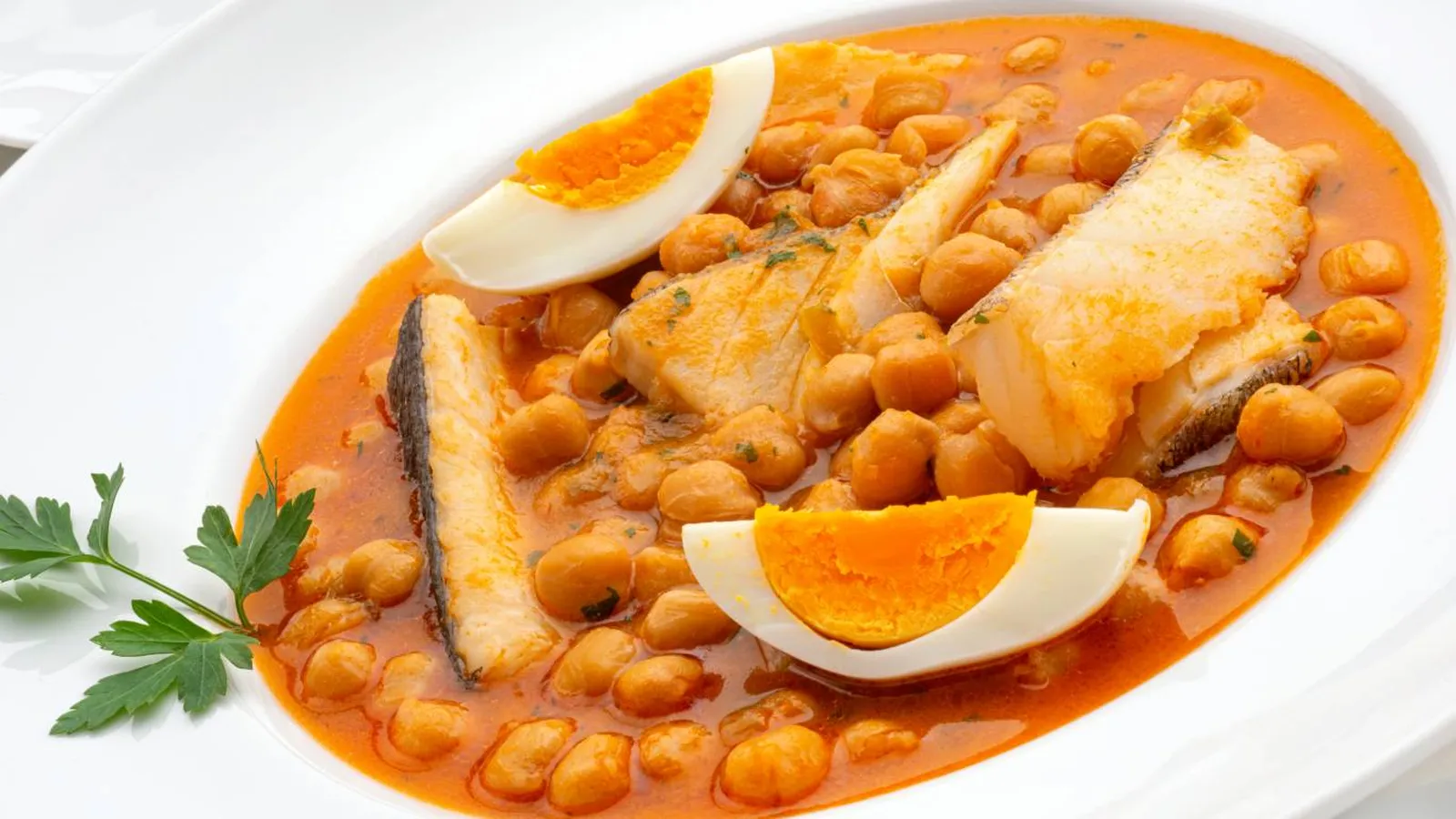 Una receta de legumbres que se elabora en olla rápida y está lista en solo 35 minutos. Además, lleva lomos de bacalao y huevos cocidos.