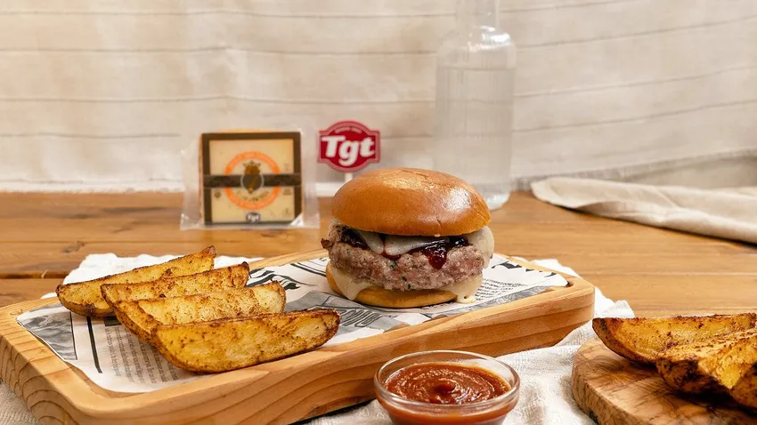 Utiliza un queso que se funda fácilmente sin perder consistencia, como 7 Coronas queso de cabra semicurado de TGT, que además le aportará un intenso sabor a la hamburguesa.