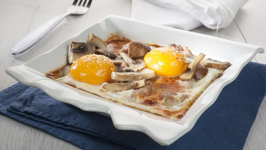 Huevos al horno con champiñones