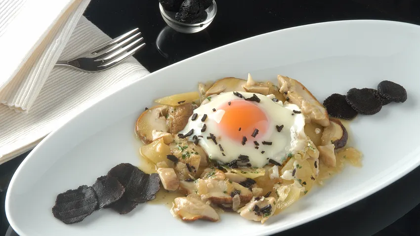 Huevo trufado con hongos - Sabores de Soria en cazuela