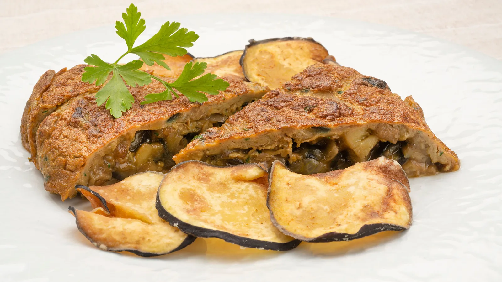 Tortilla de berenjena con berenjenas crujientes