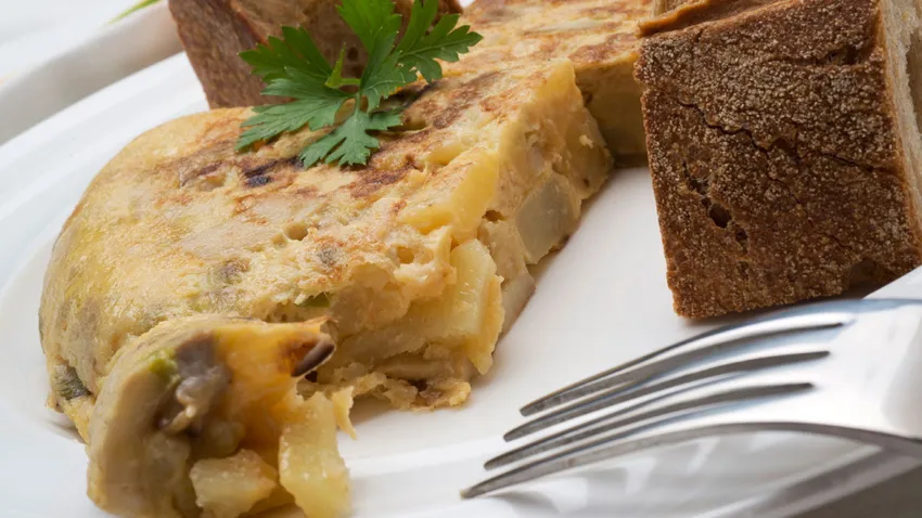 Receta de Karlos Arguiñano de tortilla de hongos y patatas con cebolleta y ajos frescos, un plato fácil de preparar y muy nutritivo.