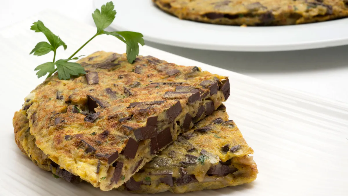 Karlos Arguiñano prepara una tortilla con sangrecilla y tocino, un plato en homenaje a la festividad de San Martín, que coincide con la matanza del cerdo.