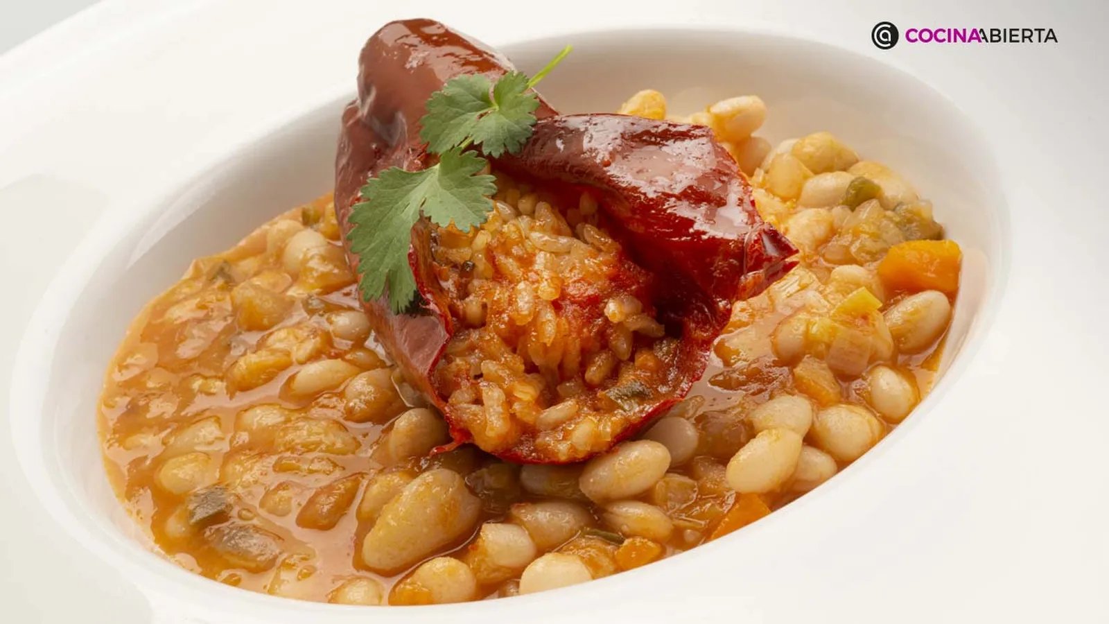 Alubia blanca con pimiento seco relleno de arroz por Karlos Arguiñano: un delicioso plato de cuchara