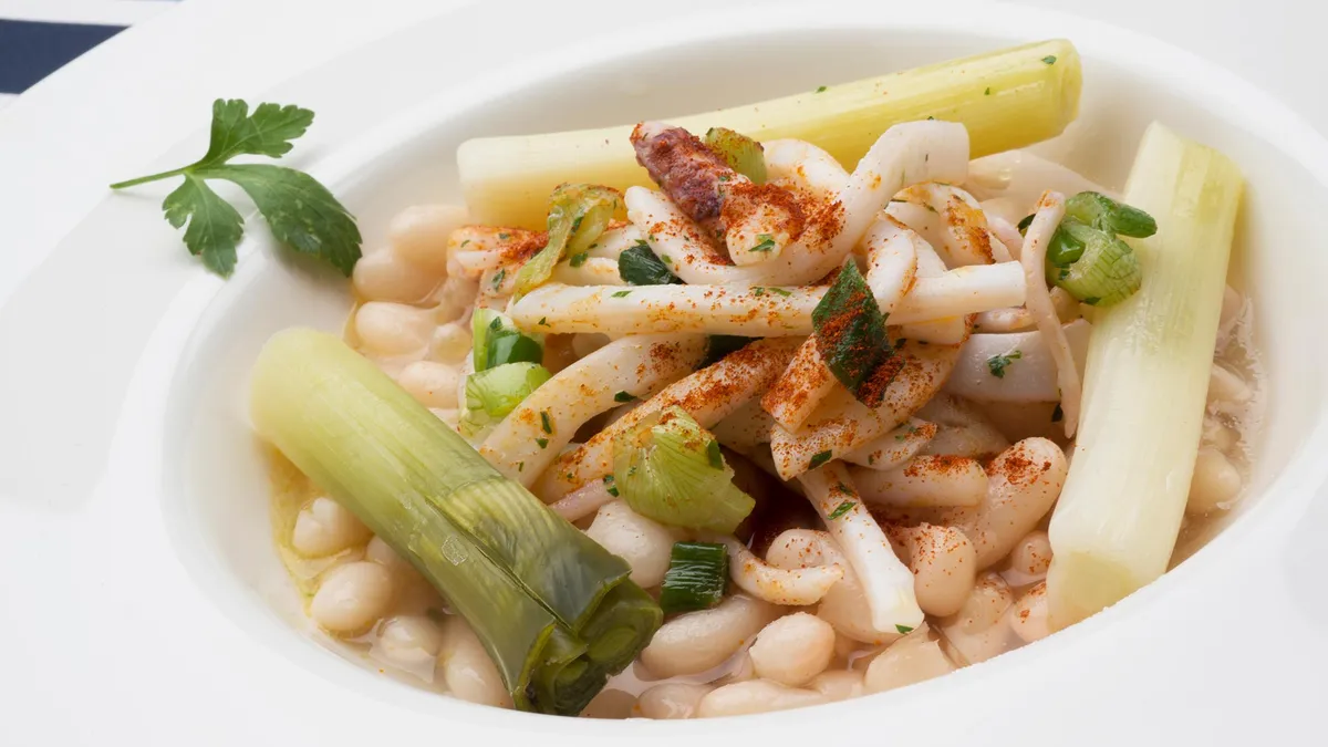 Receta de alubias blancas con calamares, un plato de legumbres elaborado por Karlos Arguiñano. ¡Rico, rico y con fundamento!