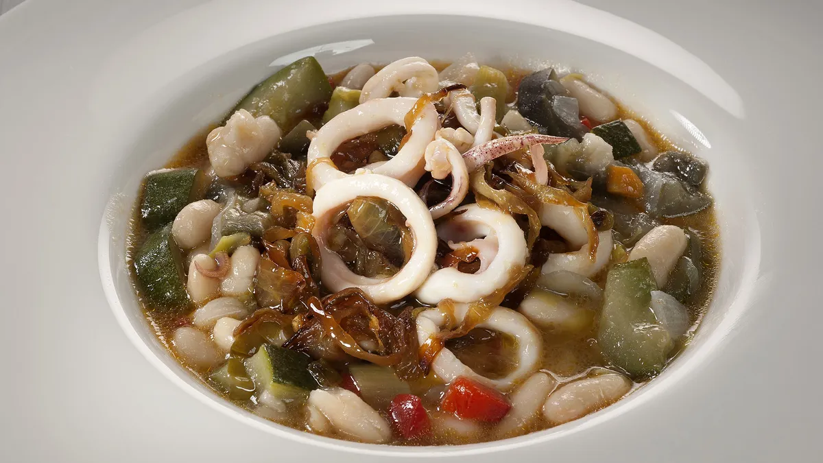 Alubias blancas con calamares y verduras