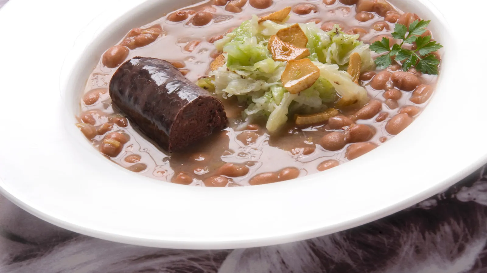 Alubias rojas acompañadas de berza y morcilla y cocinado en la olla rápida, una clásica y tradicional receta de legumbres elaborada por el cocinero Karlos Arguiñano: