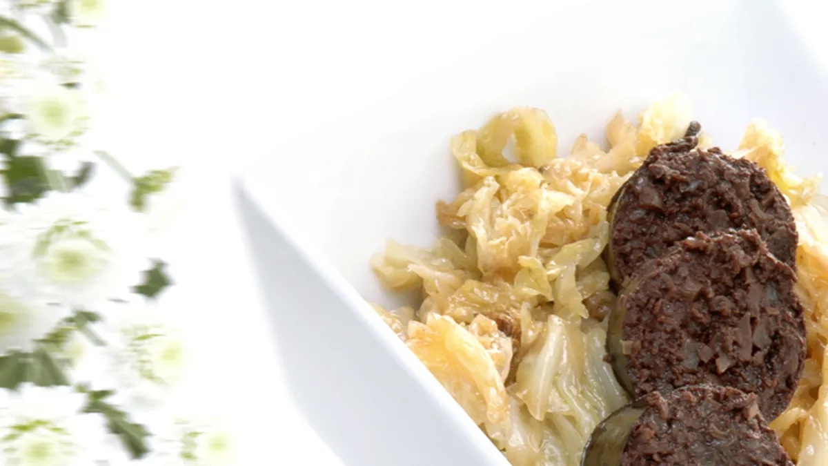 Receta de alubias de Tolosa con berza salteada, un plato típico de la cocina vasca propuesto por Karlos Arguiñano y preparado con morcilla, pimiento y puerro.
