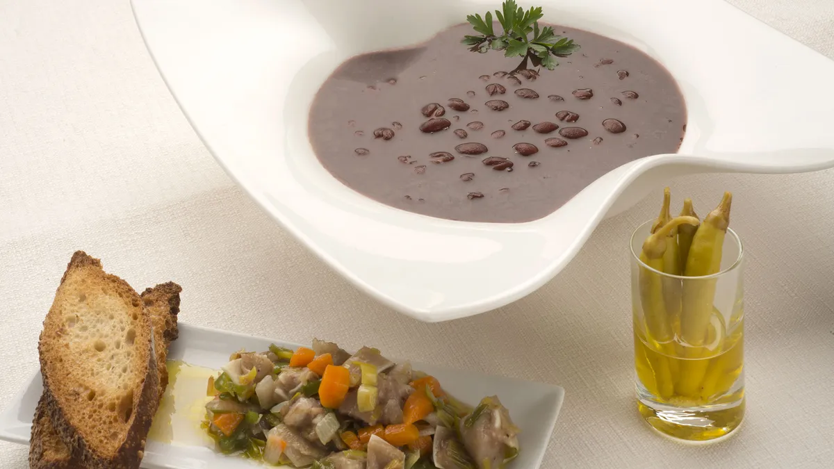 Karlos Arguiñano prepara un plato tradicional de alubias de Tolosa cocinadas a fuego suave acompañadas de oreja de cerdo con verduras, guindillas y pan tostado.