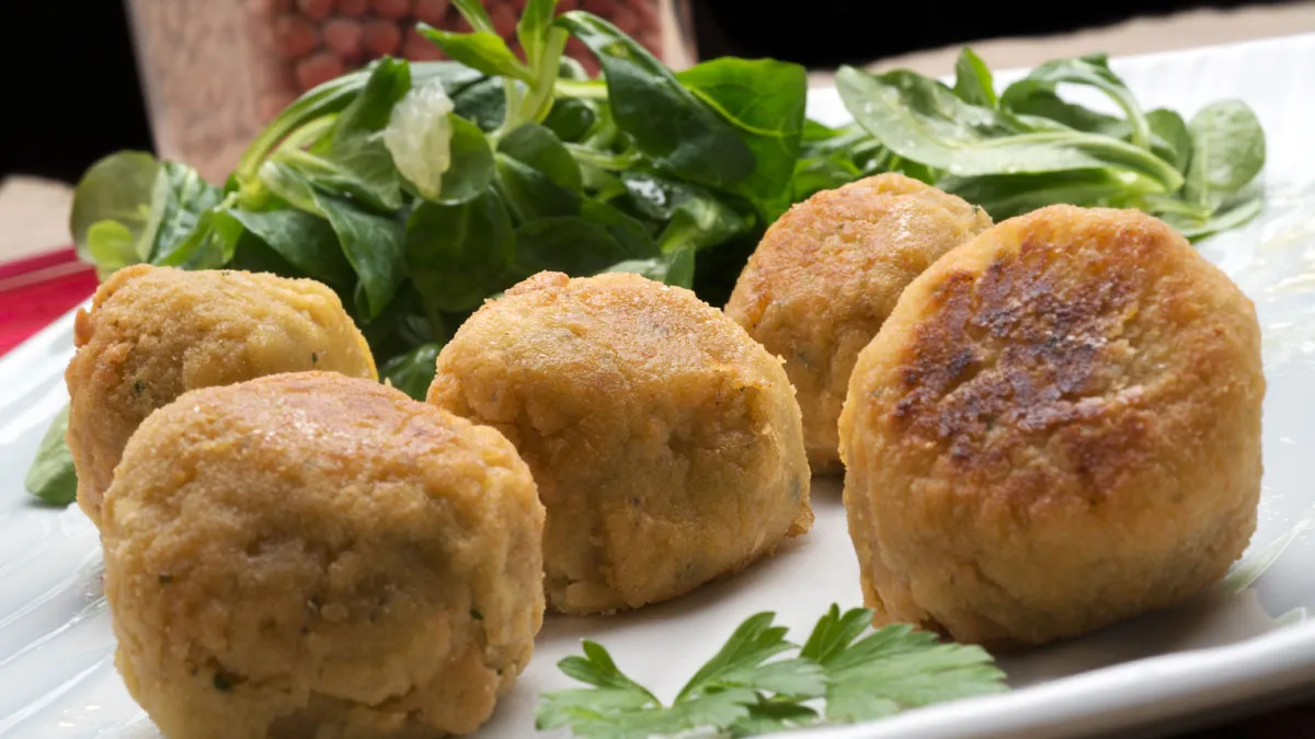 Receta de Karlos Arguiñano de bolitas de garbanzos o falafel, un plato tradicional de la cocina árabe apto para vegetarianos y veganos. En esta ocasión se acompaña con una ensalada de canónigos.