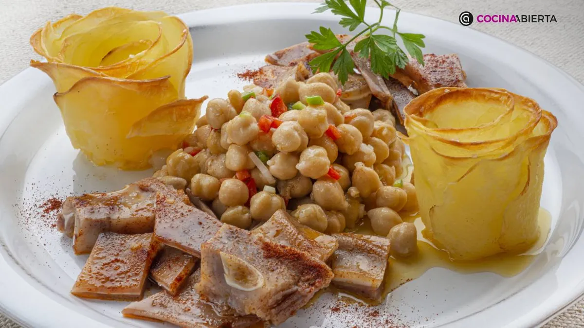 Cocinamos un cocido de verano, en el que emplearemos garbanzos, orejas de cerdo y verduras de temporada, todo en frío ¡y lo decoraremos con una flor hecha con patata! No te lo pierdas, sigue el paso a paso de Karlos Arguiñano y prepáralo, te va a encantar.