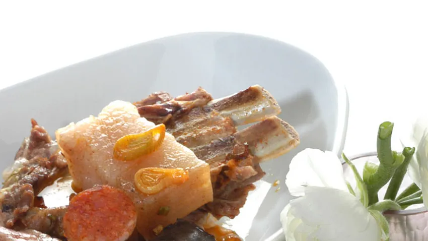 Receta de cocido montañes con alubias blancas, berza, costilla de cerdo, zancarrón, morcilla y chorizo. Un plato preparado por Karlos Arguiñano.