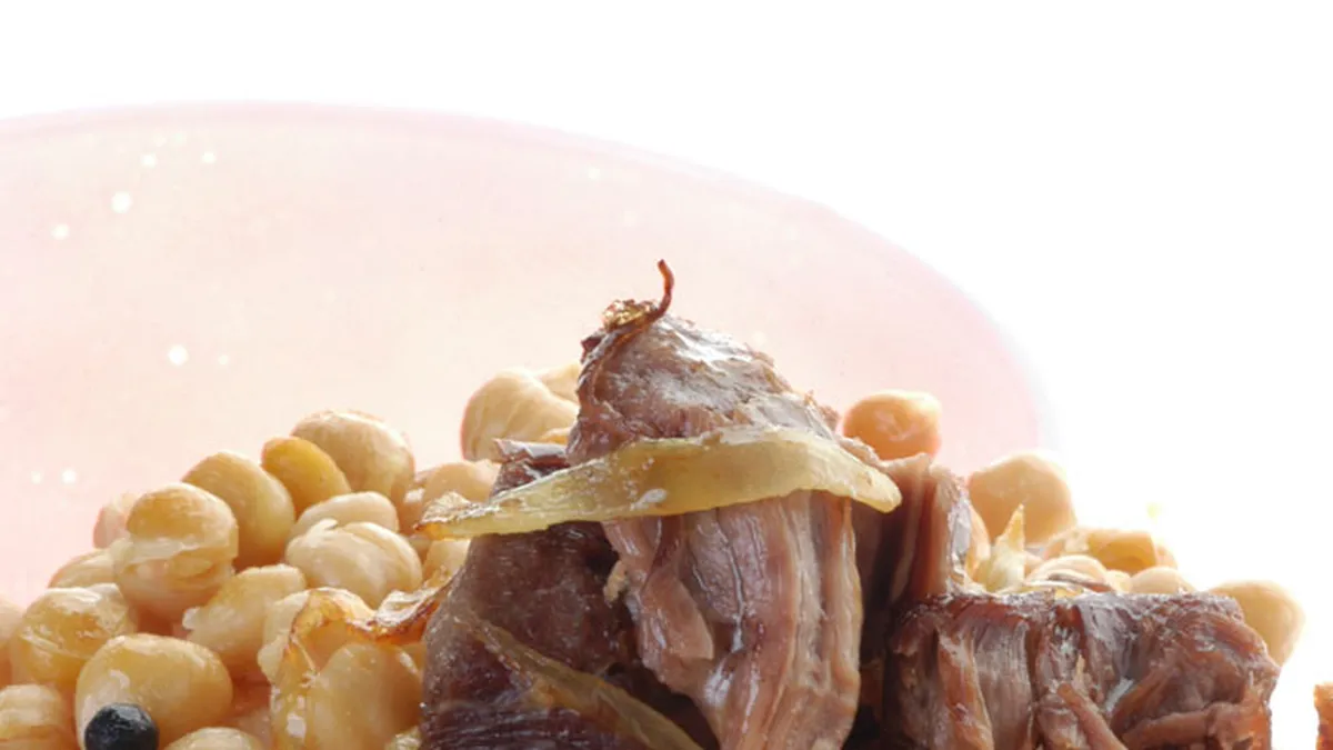 Receta de garbanzos fritos con ropa vieja, un plato preparado con zancarrón desmigado, patatas y garbanzos fritos. Receta de Karlos Arguiñano.