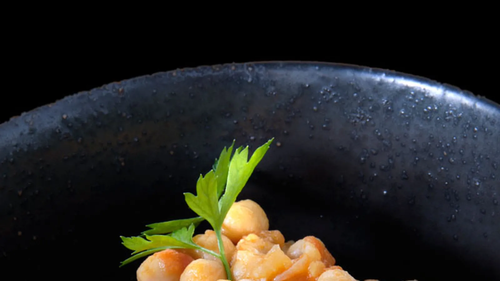 Mezcla bien la salsa de tomate con los garbanzos y el jamón y deja que se cocine el conjunto durante 4-5 minutos. Sirve los garbanzos en un plato o legumbrera y decora con una hojita de perejil.