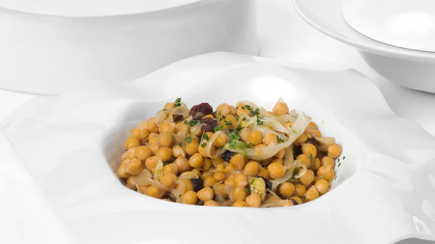 Receta de Garbanzos sicilianos. Un plato de legumbres, Eva Arguiñano prepara unos garbanzos con escarola y uvas pasas al estilo siciliano.