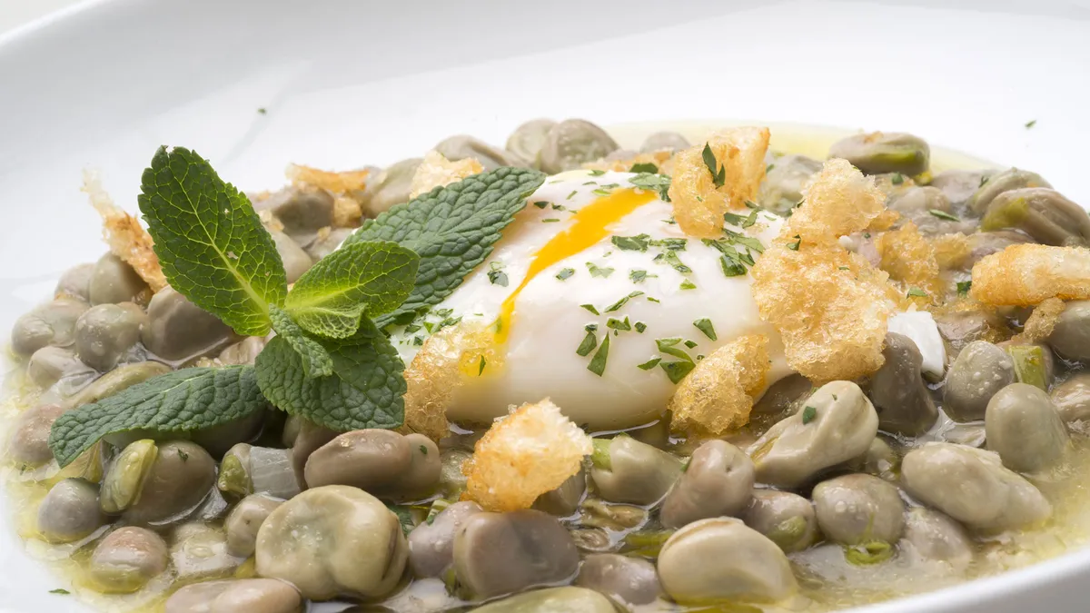 Habas con huevo escalfado