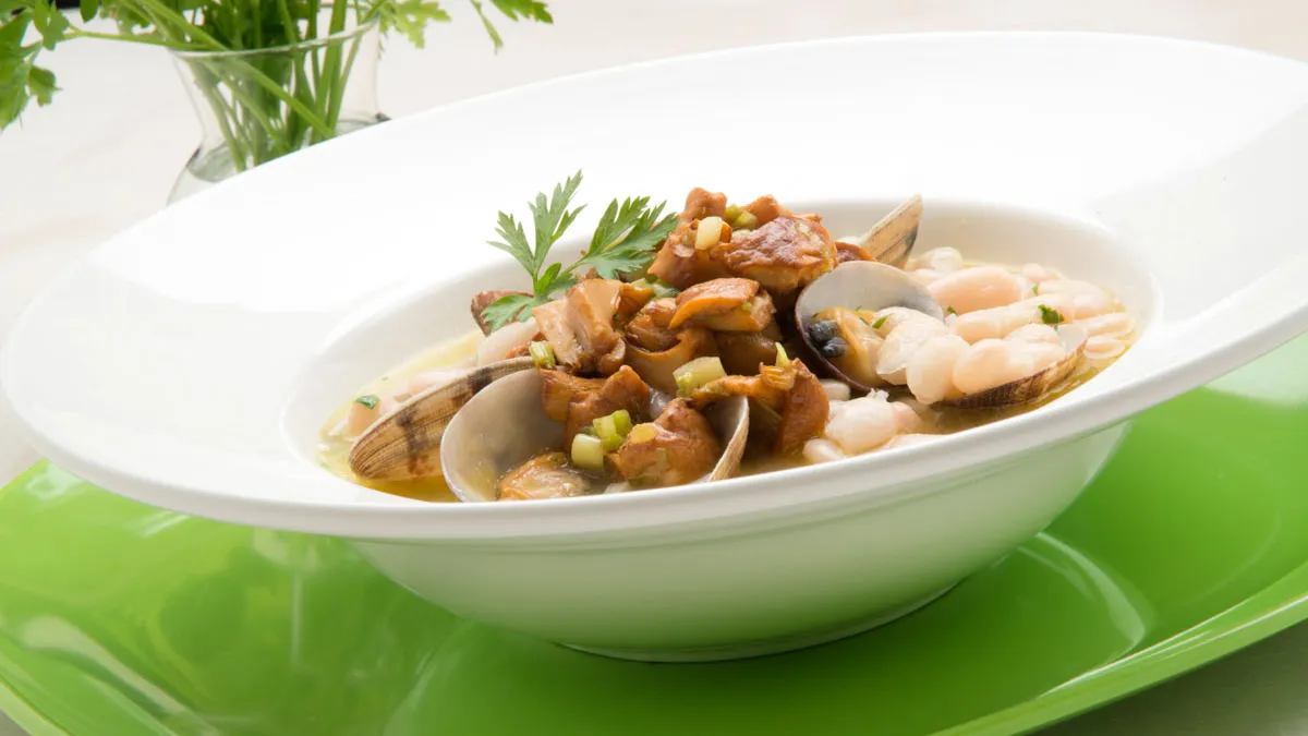 Judías del Ganxet con setas y almejas