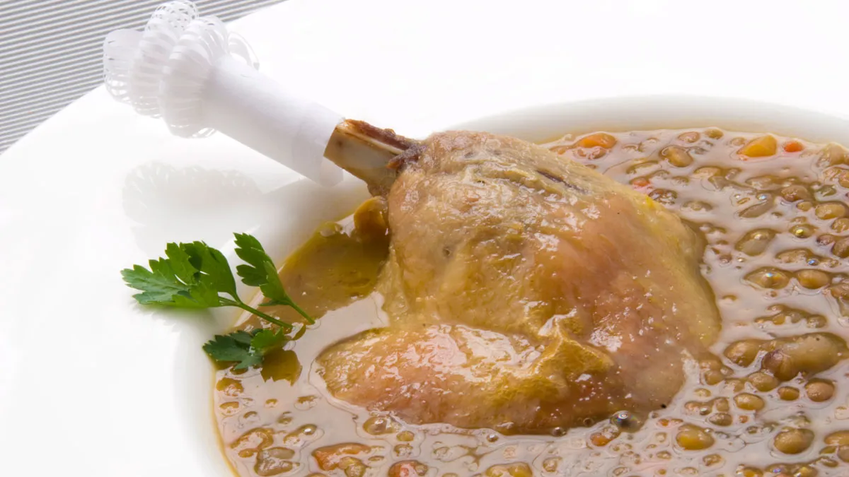 Lentejas con confit de pato asado