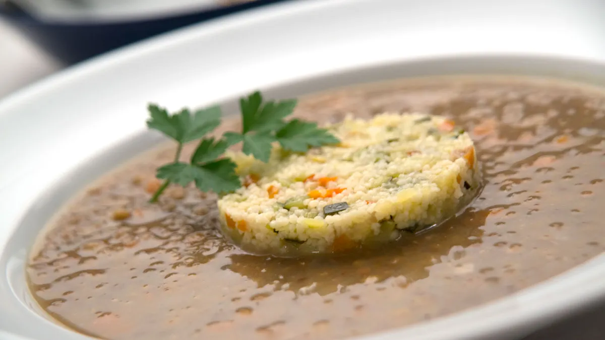 Receta de Karlos Arguiñano de lentejas acompañadas de cuscús con verduras, un plato muy completo y nutritivo, apto para vegetarianos y veganos.