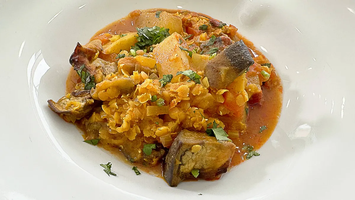 Cómo hacer lentejas rojas con berenjenas y patatas