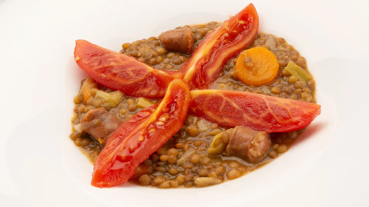Acompañar las lentejas con un puñado de arroz y un zumo de naranja natural para mejorar el aporte de proteínas y hierro.