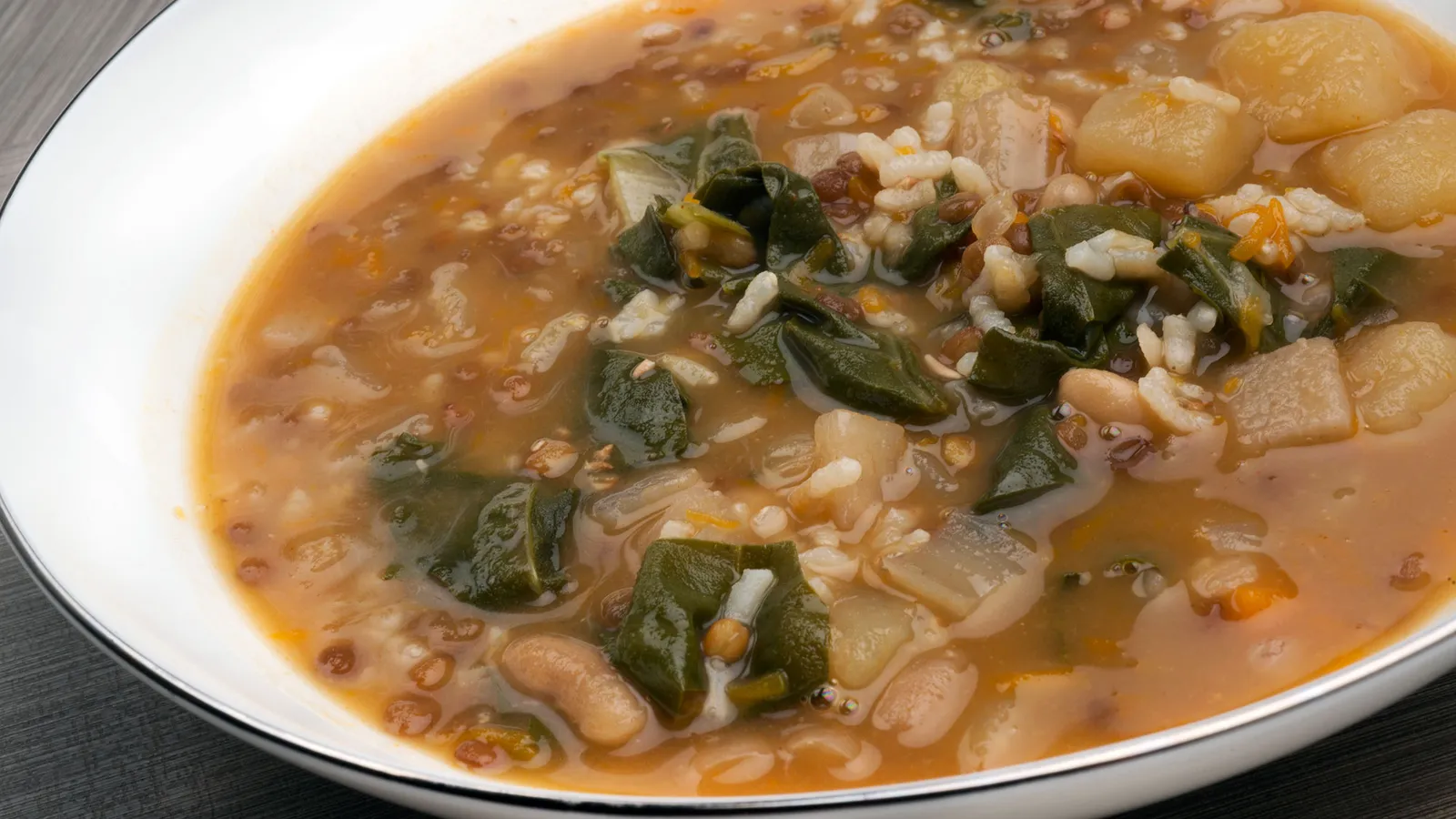 Karlos Arguiñano prepara una olleta alicantina, un potaje de legumbres y arroz con verduras tradicional de las zonas de montaña de Alicante. Este plato es apto para vegetarianos y veganos.