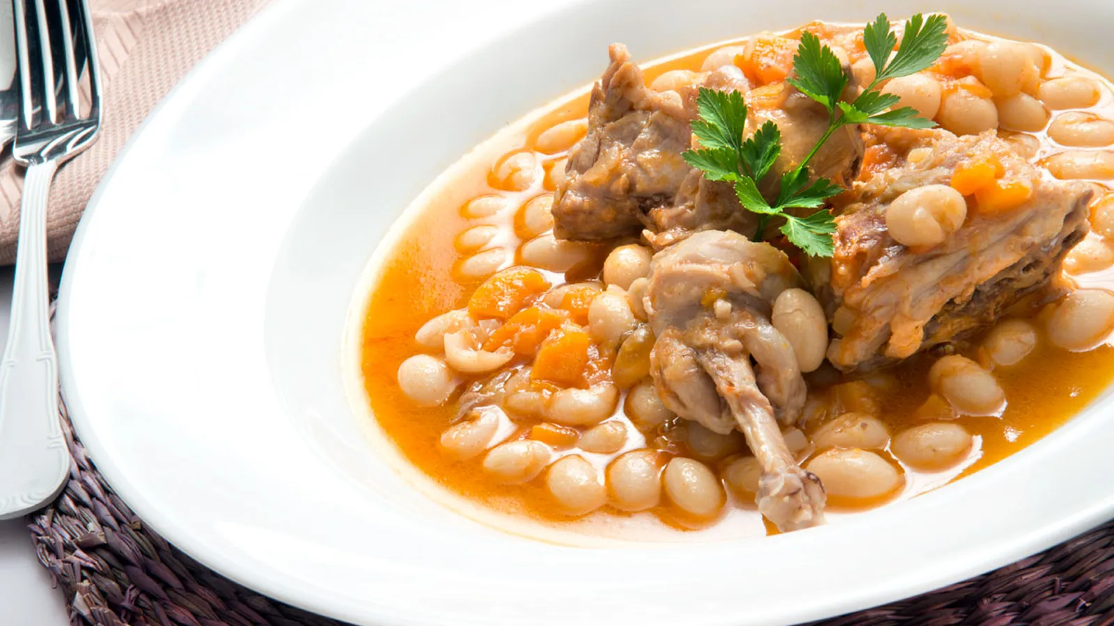 Karlos Arguiñano elabora una receta de pochas o alubias blancas acompañadas de conejo, un plato muy completo.