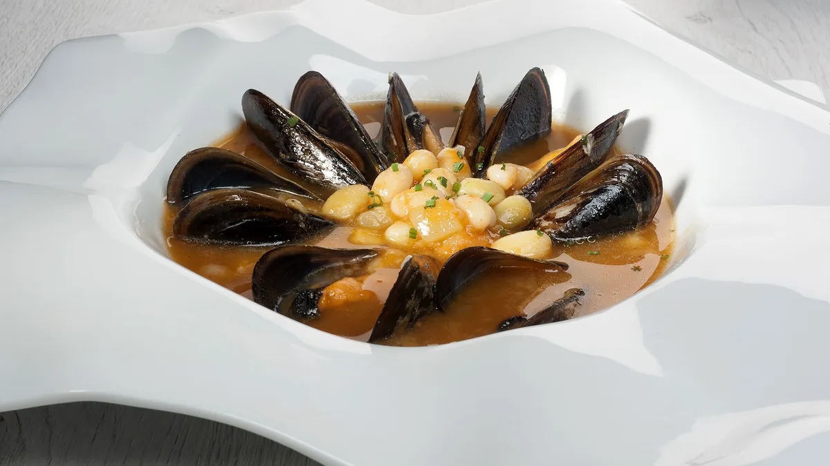 Pochas con mejillones