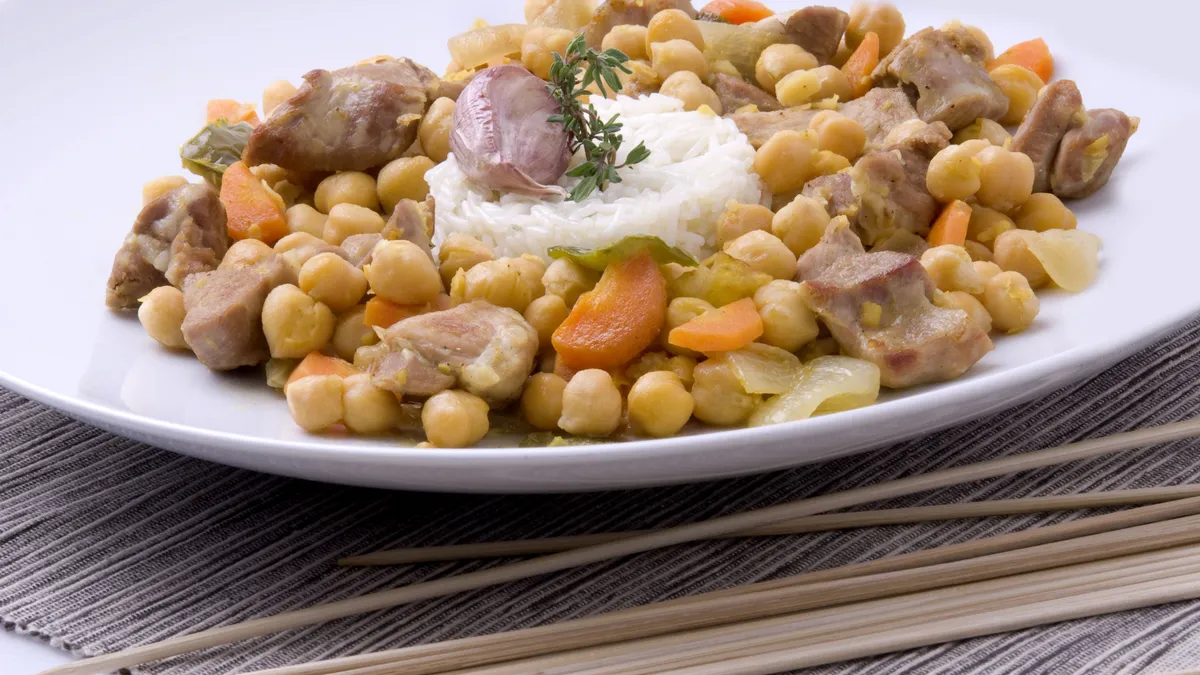 Garbanzos con cordero al curry