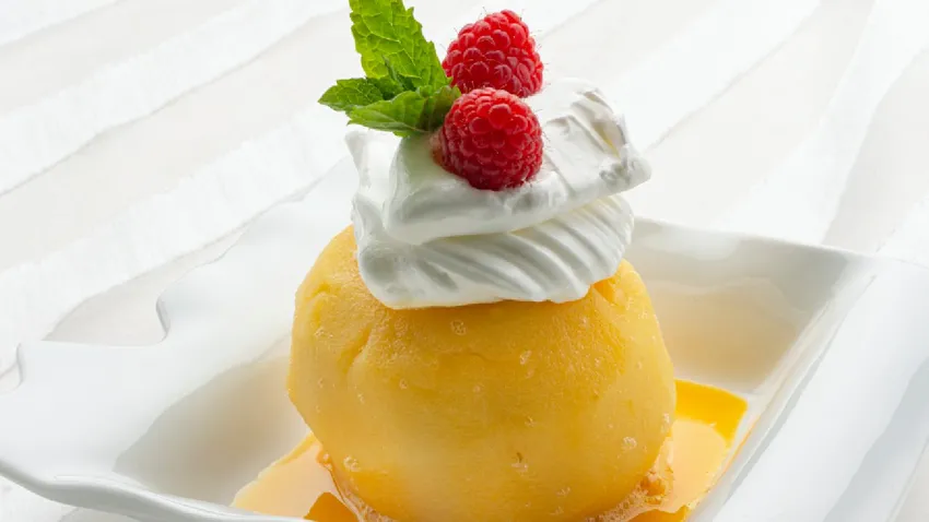 Este postre lleva un merengue francés. A la hora de montarlo, asegúrate de que el recipiente esté limpio y sin restos de yema, ya que la grasa impediría que las claras monten correctamente.