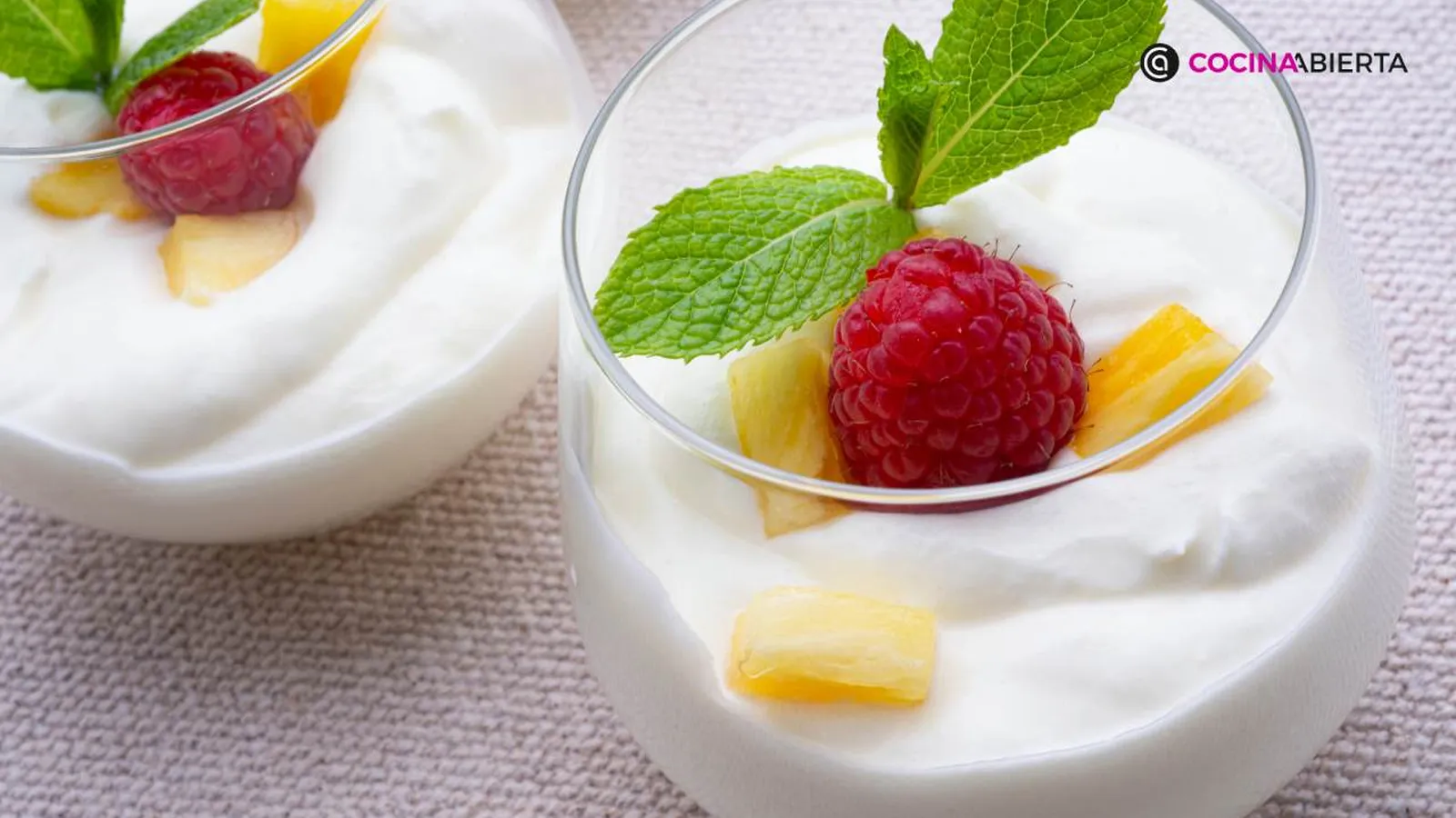 Para realzar su carácter tropical, puedes servir la mousse de piña con distintos acompañamientos. Arguiñano la decora con frambuesas y hojas de menta. También puedes añadir galletas crujientes, como lenguas de gato o tejas de almendra y naranja.