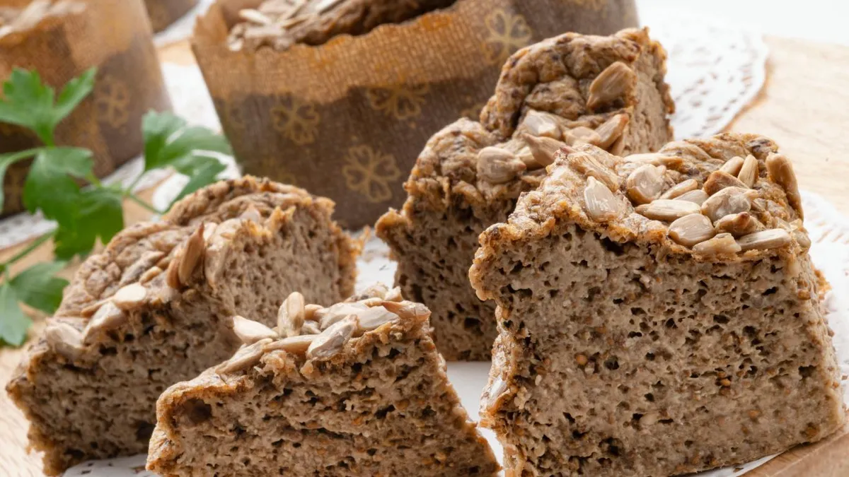 A diferencia de otros panes, esta receta no requiere autólisis, ni amasado, ni fermentación. Solo hay que triturar los ingredientes, verter la mezcla en los moldes y hornear. Por eso, técnicamente no se trata de un pan tradicional, ya que no lleva harina.