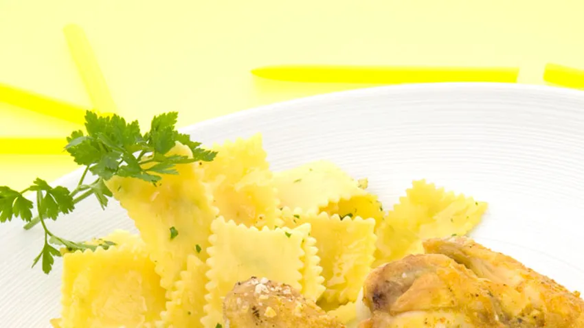 Karlos Arguiñano nos presenta una receta de alas de pollo asadas al horno con curry y como guarnición pasta con pimienta negra.