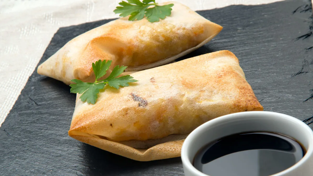 Receta de Karlos Arguiñano de bricks rellenos de verduras y gambas asados en el horno y acompañados de salsa de soja, un plato fácil y rápido de preparar.