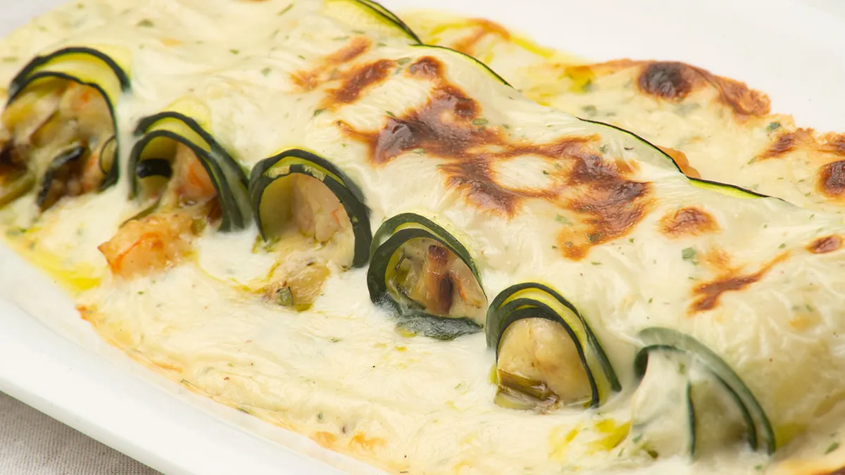 Canelones de calabacín y langostinos
