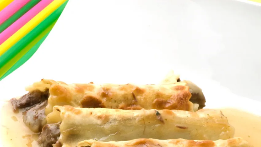 Canelones rellenos de carne, carrilleras de ternera, horneados con el caldo de las carrileras, la propuesta culinaria de Karlos Arguiñano.