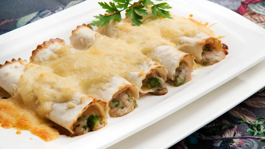 Canelones rellenos de pavo y espárragos verdes