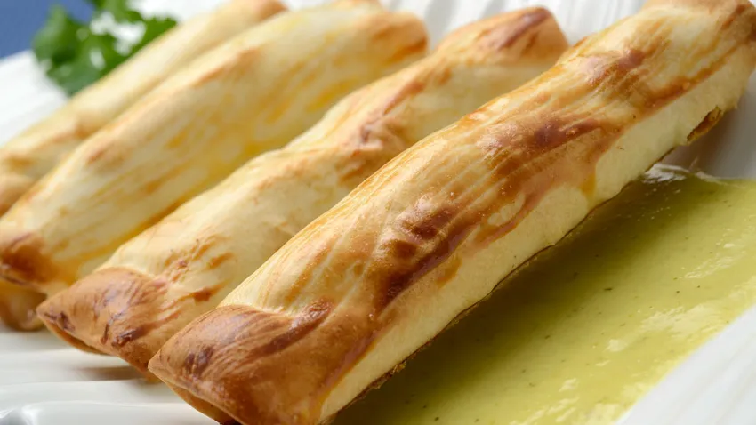 Elaboración de la receta de Canutillos crujientes con salsa de calabacín: