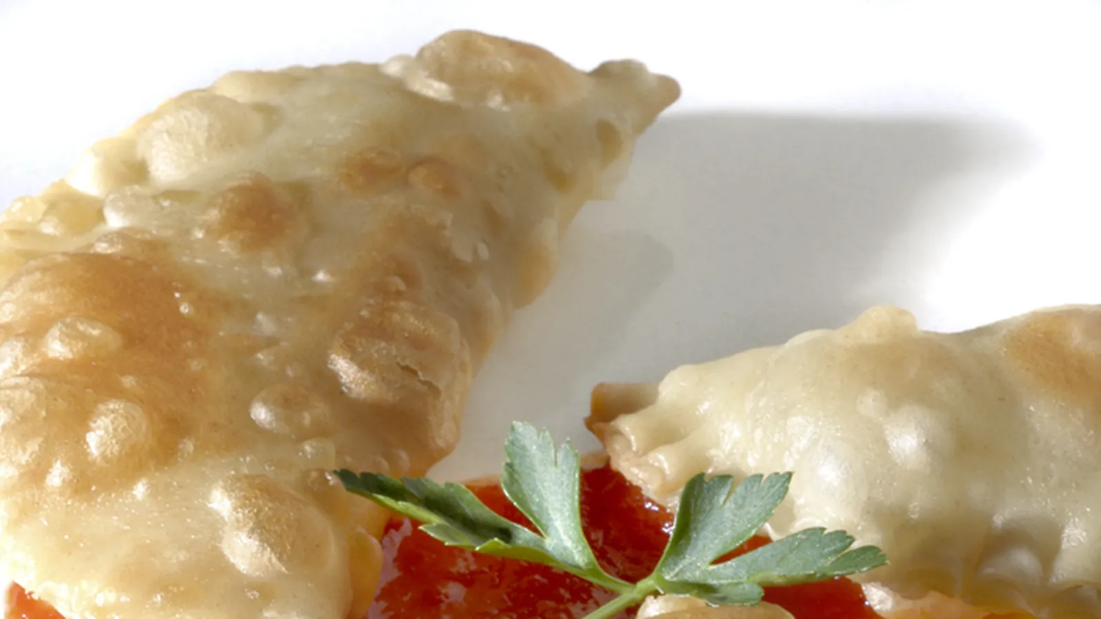 Cierra las empanadillas y presiona los bordes con un tenedor. Fríelas en una sartén con abundante aceite caliente. Escúrrelas sobre papel absorbente.