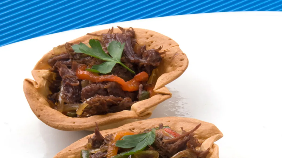 Receta de empanadillas y cestitas de ropa vieja, un plato delicioso con carrilleras de ternera y verduras. Receta de Karlos Arguiñano.