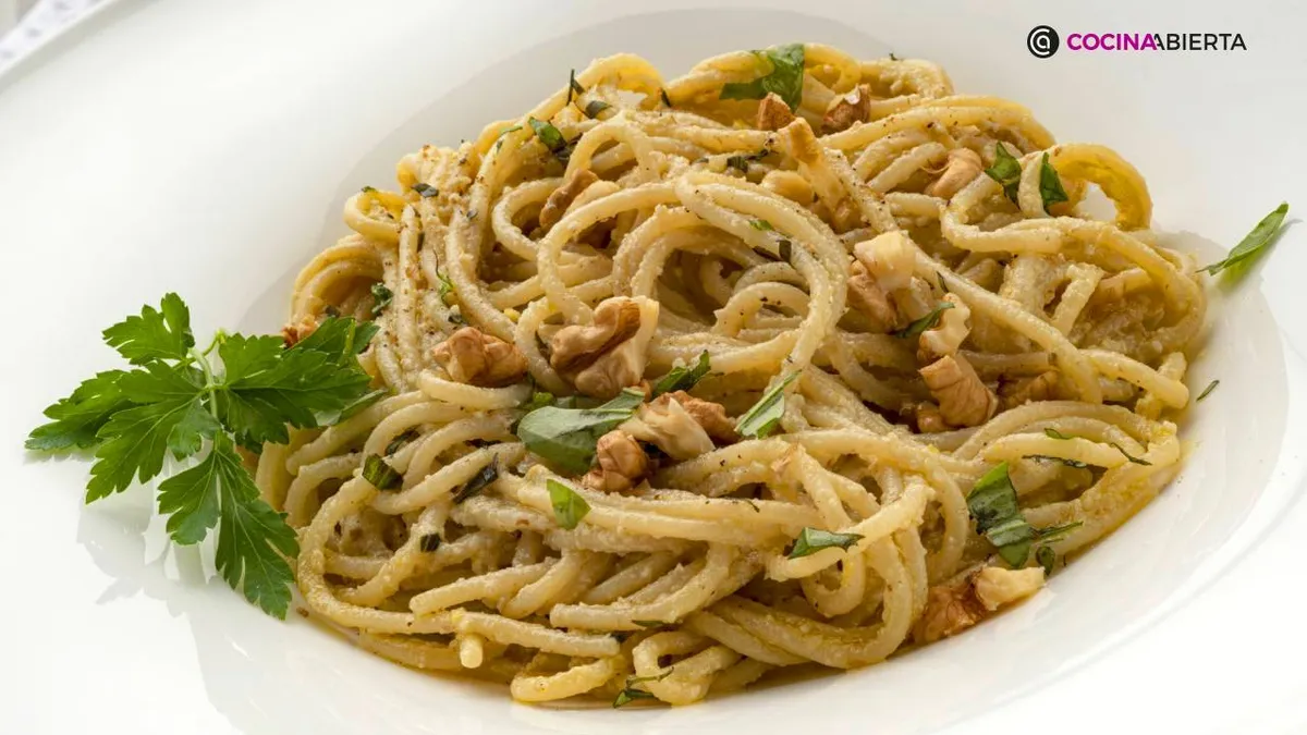 ¿Os gustan los macarrones al pesto? Pues os aseguro que estos espaguetis que nos propone Joseba Arguiñano os sorprenderán de lo lindo. Le da un toque cítrico a la pasta con una salsa pesto de limón, ajo, parmesano, aceite y trocitos de nueces. El resultado es un espectáculo que enamorará a los que somos tan fans de la pasta. Anímate a preparar estos espaguetis al pesto de limón porque se preparan en un boleo y quedan cremosísimos.