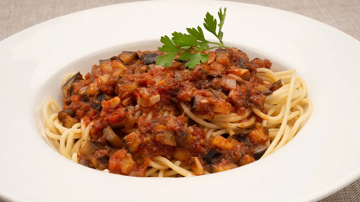 espaguetis con berenjenas plato