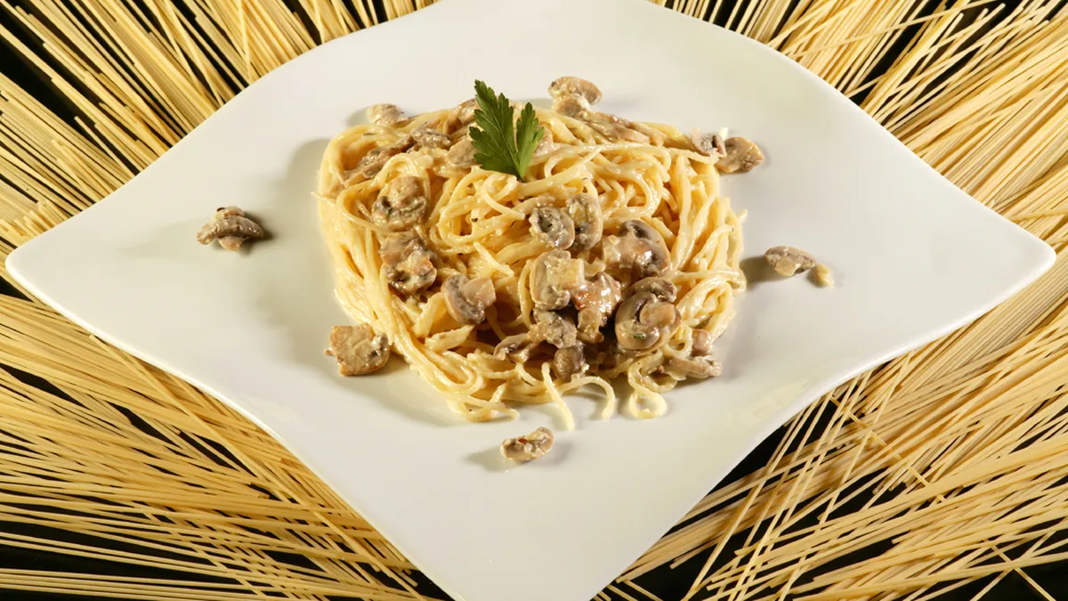 Espaguetis con salsa de champiñones y queso