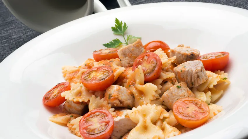 Receta de Karlos Arguiñano de lazos o farfalle de pasta con bonito, tomate y tomillo, un plato sencillo y nutritivo.