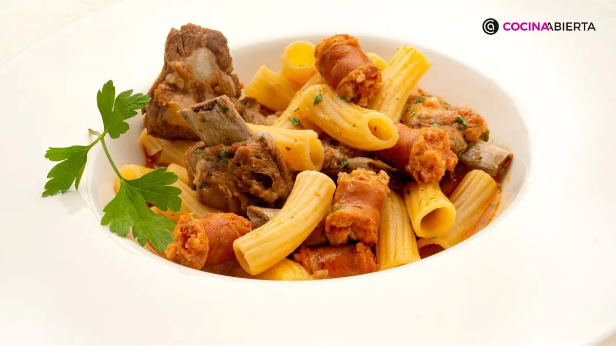 Macarrones caldosos con costilla de cerdo y chistorra, de Arguiñano