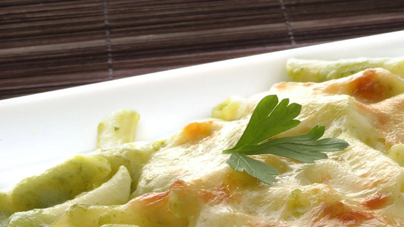 Receta de macarrones con salsa de pimientos. Karlos Arguiñano prepara un plato de pasta con chalotas, gratinadas con queso realizada para Patxi Trula.