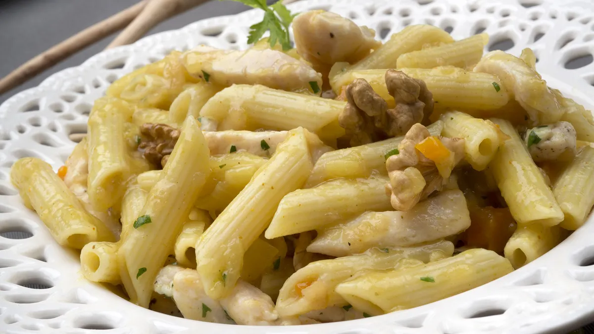 Karlos Arguiñano prepara un plato de macarrones con pollo al curry, zanahoria, cebolleta y nueces.