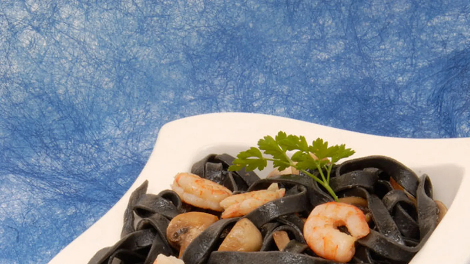 Receta de pasta negra con champis y gambas. Karlos Arguiñano elabora la pasta fresca con tinta que calamar y que saltea luego con champiñones y gambas, ¡delicioso!
