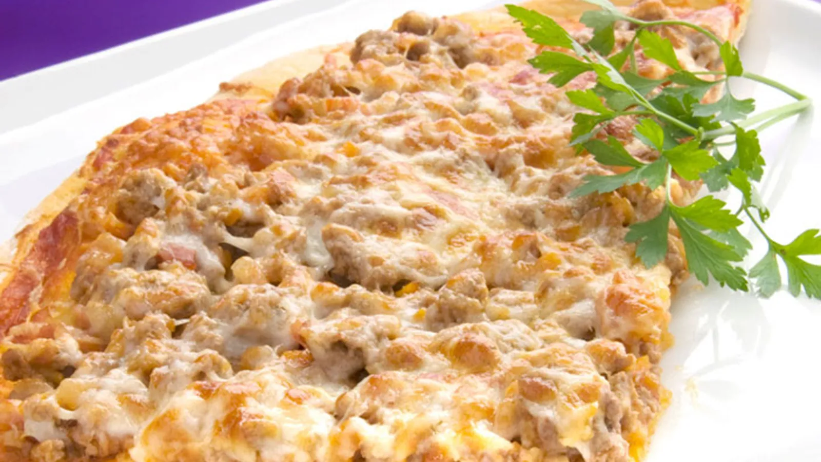 Receta de pizza boloñesa, un plato clásico de la cocina italiana realizado por Karlos Arguiñano, pizza deliciosa preparada con ternera, panceta, queso y salsa de tomate.